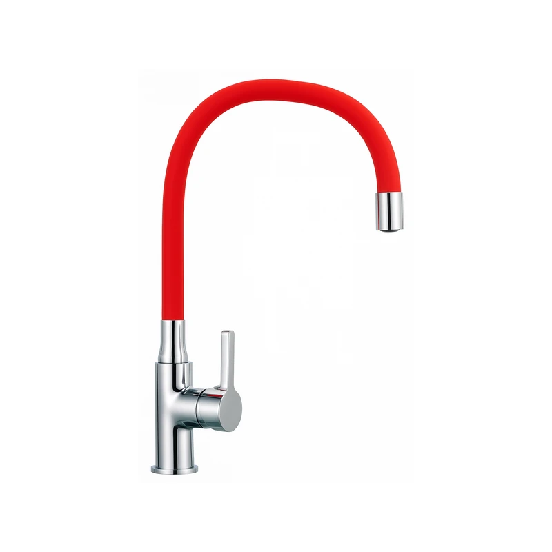 Llave Monomando Lavaplatos Vertical Cuello Flexible Rojo
